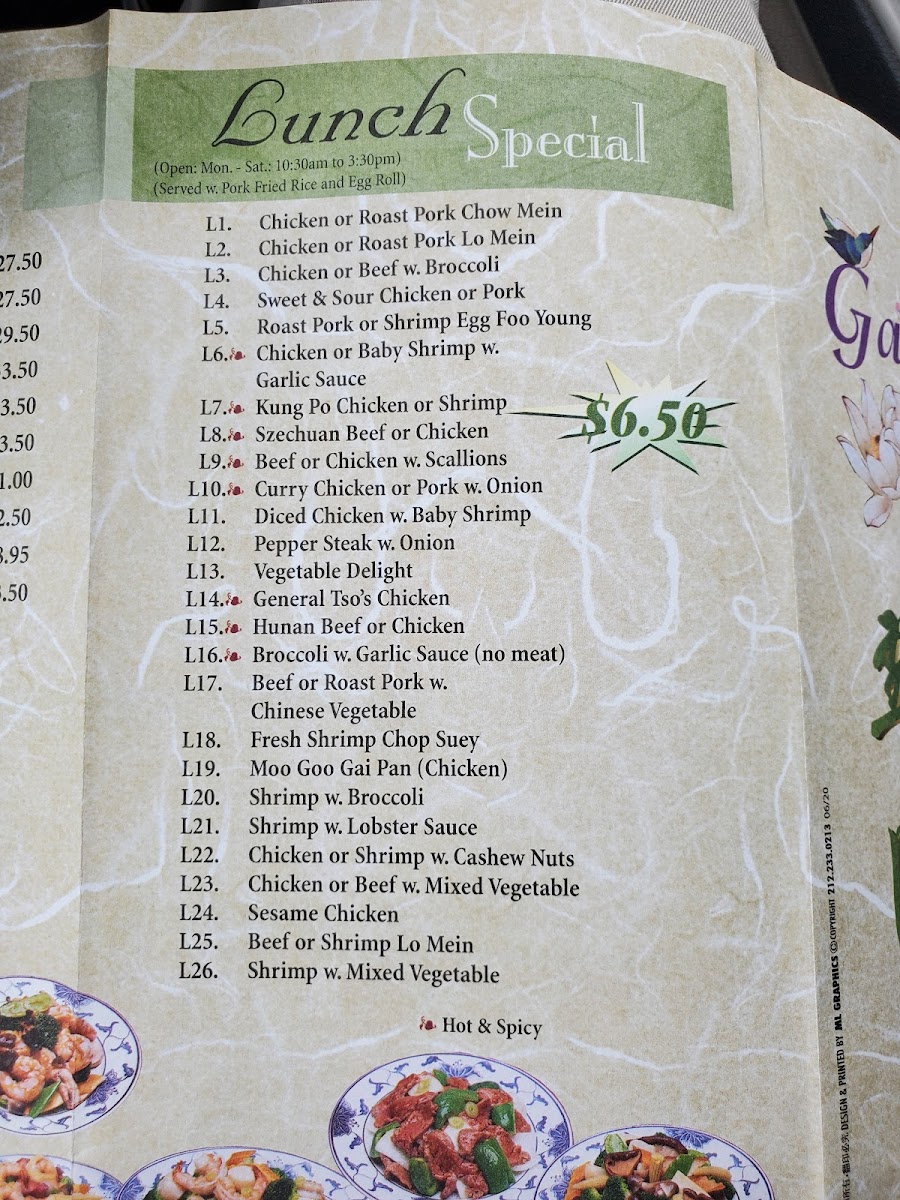 The restaurant’s dedication to cleanliness and customer safety is commendable, featuring protective measures and a welcoming atmosphere. With friendly service and a clean environment, Jade Garden is not just a place for a meal; it’s a cherished dining experience. Whether you’re celebrating a special occasion or simply indulging your cravings, Jade Garden’s menu will undoubtedly satisfy your taste buds!